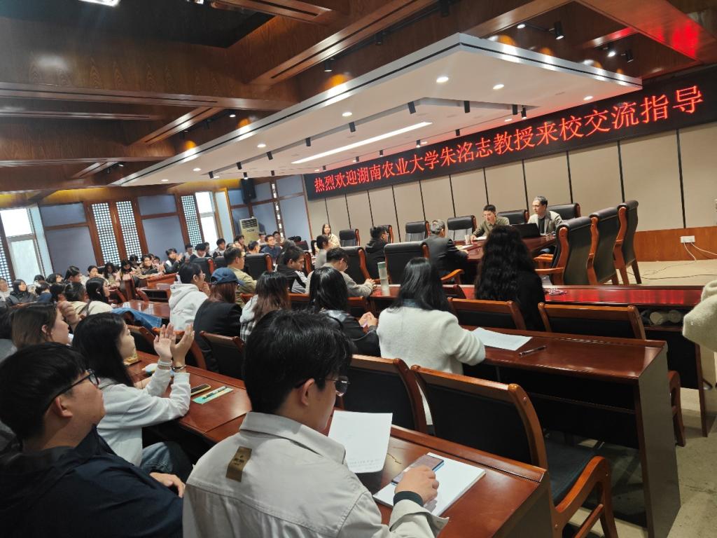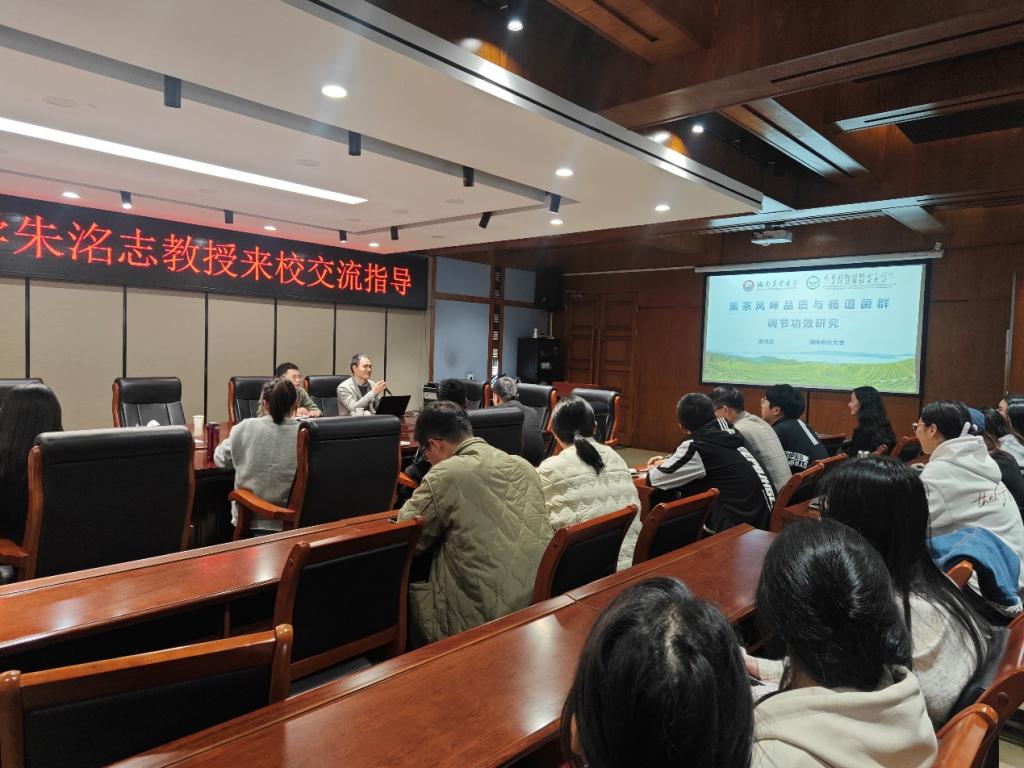 11月6日,湖南农业大学朱洺志教授于逸夫楼321为我院师生作题为“黑茶风味品质与肠道菌群调节功效研究”的学术报告。报告由英国365集团副教授陈震主持,本院教师及研究生、本科生参会,现场济济一堂,交流氛围热烈。