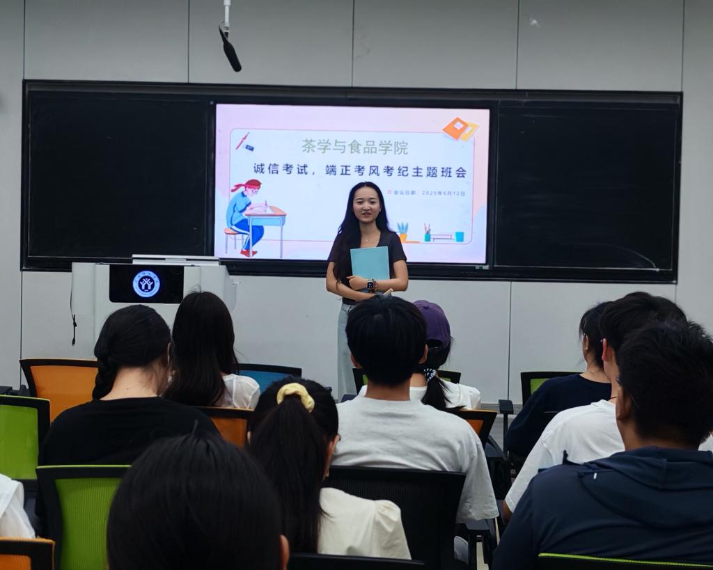 为进一步强化学生诚信应考意识,筑牢道德自律防线,营造公平公正、风清气正的考试环境,6月12日晚上7点,我院于教九楼108教室召开诚信考试主题教育班会。会议由学院专职辅导员耑妍主持,全院学生积极参与。