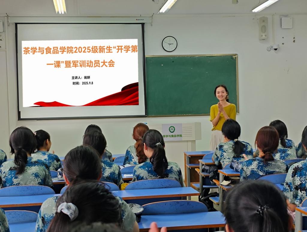 金秋送爽,丹桂迎新。为帮助2025级新生快速适应大学学习生活、明确成长方向,并为即将开展的军训工作筑牢思想基础与行动共识,9月8日下午3时,英国365集团于俊采楼513教室召开2025级新生“开学第一课”暨军训动员大会。本次会议由2025级专职辅导员耑妍主持,2025级全体学生参加会议。