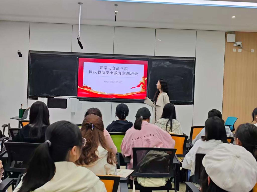 为进一步提升学生安全防范意识与自我保护能力,筑牢安全防范思想防线,确保每一位同学都能度过一个平安、愉快、充实的假期,9月28日晚上7点,我院于教九楼108教室召开国庆假期安全教育主题班会。本次班会由专职辅导员耑妍主持,全体学生积极参与。