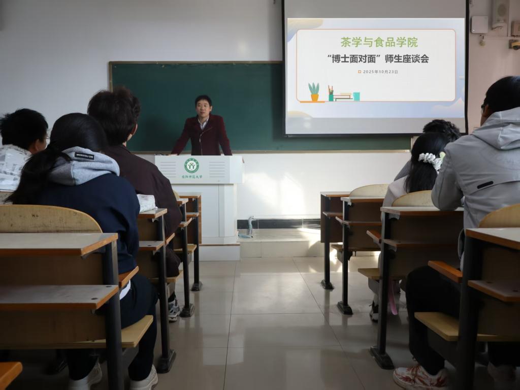 为帮助2025级新生顺利适应大学生活,明确专业发展方向,科学规划学业生涯,10月23日下午两点,我院茶学班于俊采楼407教室召开"博士面对面"师生座谈会。本次会议由周棋赢院长主持,2025级专职辅导员耑妍及茶学班全体学生参加。